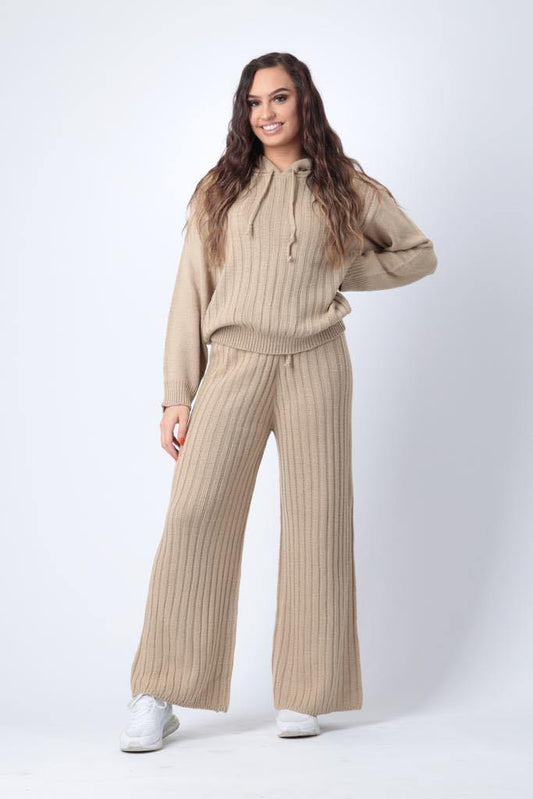 <transcy>Бежевые широкие брюки в рубчик</transcy>